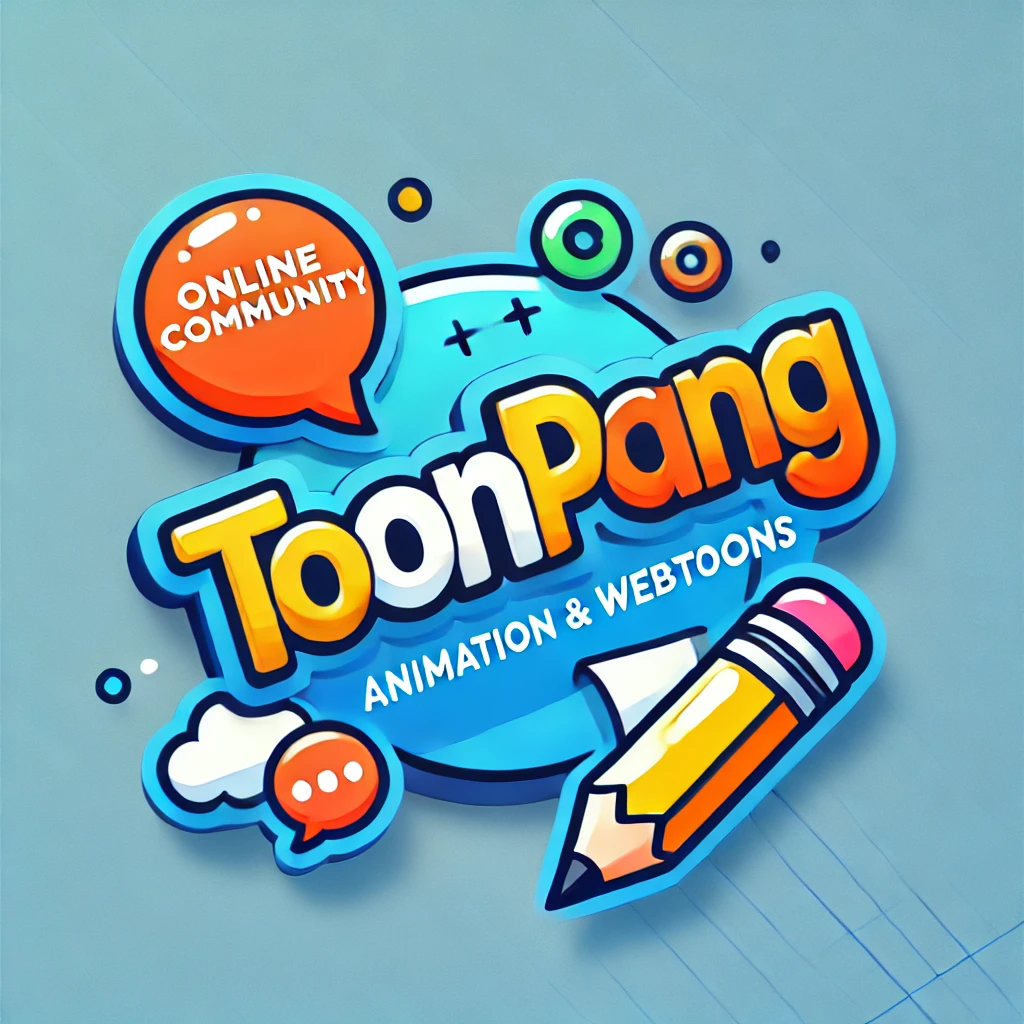 DALL·E 2024-12-16 10.19.44 - A modern and vibrant logo design for an online community named 'ToonPang' that focuses on animation and webtoons. The logo features a playful and colo